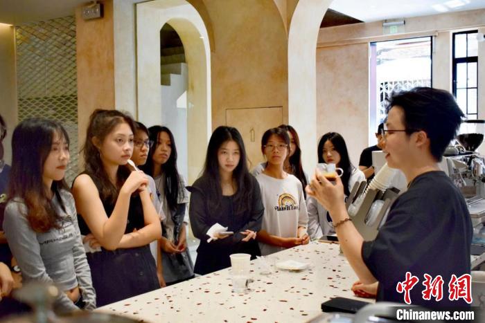 青年在體驗(yàn)“手沖咖啡”課程。廣州市越秀區(qū)人民政府供圖