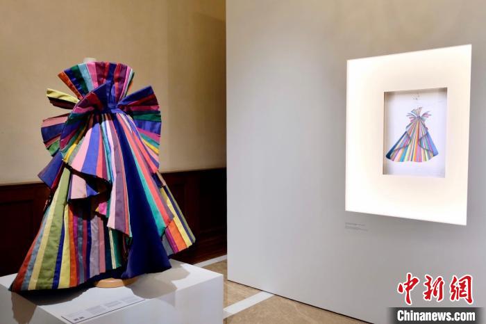 羅貝托·卡普奇紀(jì)念首場(chǎng)“意大利高級(jí)時(shí)裝秀”五十周年典禮裙及手稿原作?!≈行戮W(wǎng)記者 王笈 攝