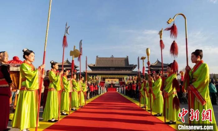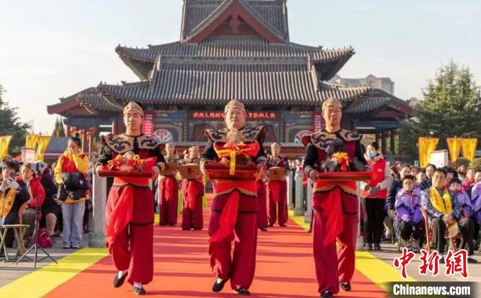 以“尋根洪洞大槐樹傳承孝德千萬家”為主題的祭祖大典正在舉行。洪洞大槐樹景區(qū)供圖