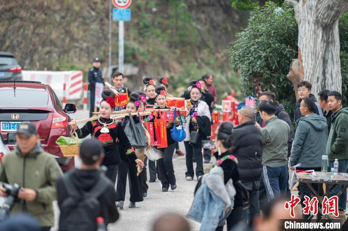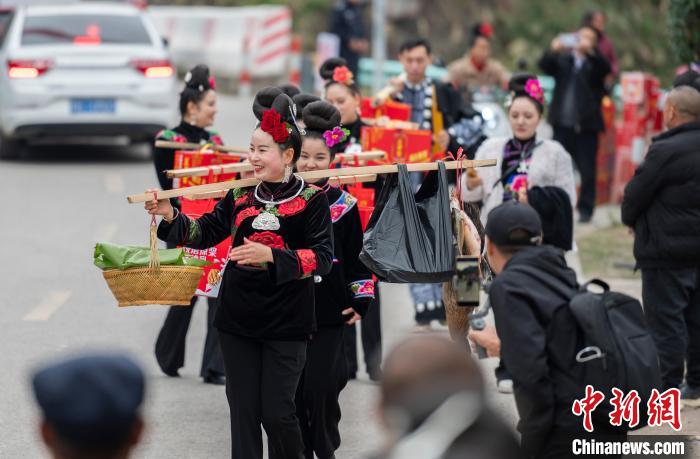圖為苗族同胞喝攔門酒。唐哲 攝