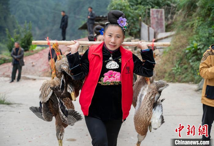圖為苗族同胞挑鴨子過鼓藏節(jié)。唐哲 攝