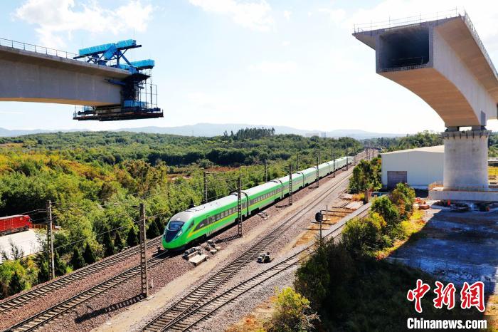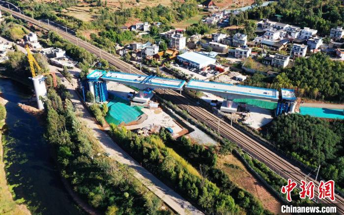 圖為由中鐵四局承建的渝昆高鐵八家村跨滬昆鐵路特大橋。楊紫軒 攝