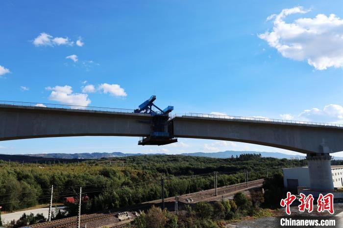 圖為中鐵十六局集團(tuán)承建的渝昆高鐵阿里塘特大橋連續(xù)梁成功轉(zhuǎn)體。楊紫軒 攝