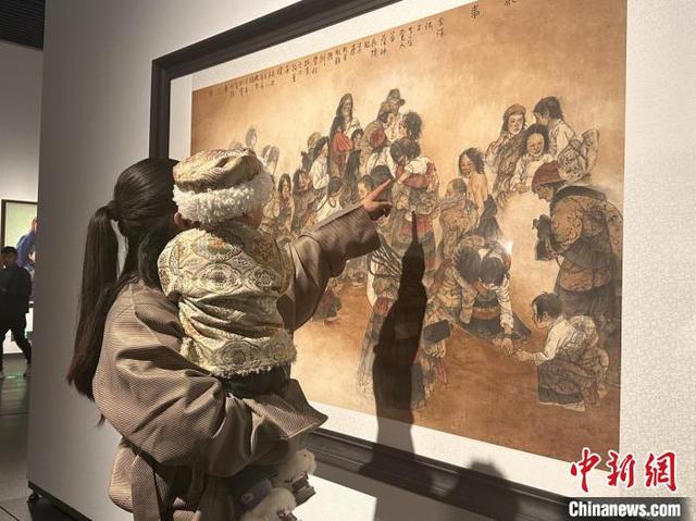 圖為觀眾正在欣賞展覽中的美術(shù)作品。澤塔雍措 攝