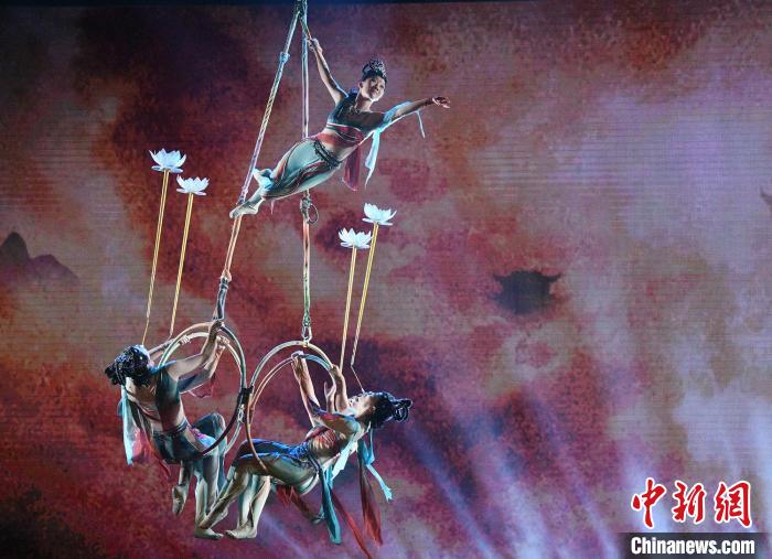 《天山雪》以“逆風(fēng)飛翔”的“雄鷹精神”作為主旨,以雜技人的故事貫穿始終,串聯(lián)起70年來(lái)新疆各族人民共同建設(shè)新疆、發(fā)展新疆的壯美歷程,用雜技藝術(shù)語(yǔ)匯立體講述各族人民攜手奮進(jìn)的故事。中新網(wǎng)記者 孫亭文 攝