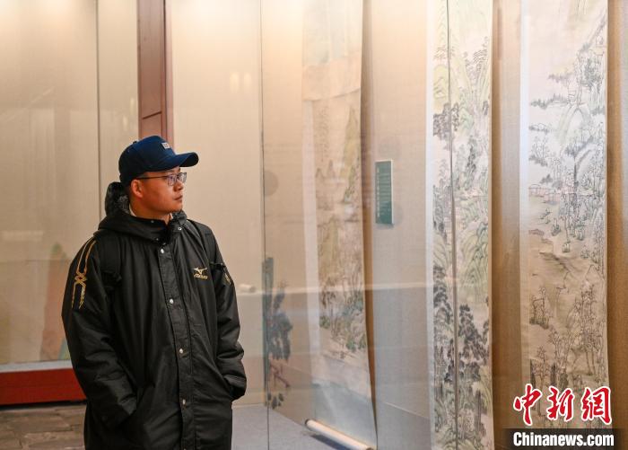 11月16日,“千峰翠色——院藏青綠山水繪畫展”在沈陽故宮師善齋、協(xié)中齋開展,29件(套)院藏青綠山水繪畫文物通過“濃妝淡抹總相宜”“游歷青山綠水間”兩個單元展現(xiàn)我國“綠水青山”的氣象萬千。圖為觀眾在觀看展覽。