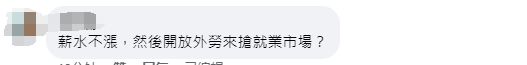 在臺(tái)媒評(píng)論區(qū),也有島內(nèi)網(wǎng)友留言表示,“薪水不漲,然后開放外勞來搶就業(yè)市場?”