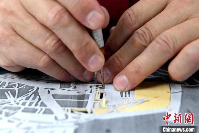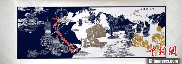 11月17日,劉建國創(chuàng)作的剪紙作品《京杭流韻圖》。崔賢飛攝
