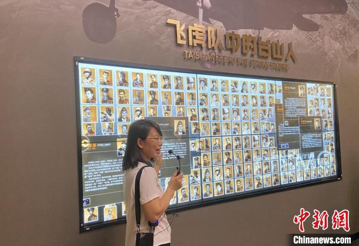 中國僑都華僑華人博物館內(nèi),講解員正在介紹飛虎隊(duì)中祖籍廣東臺山的隊(duì)員。畢松杰 攝