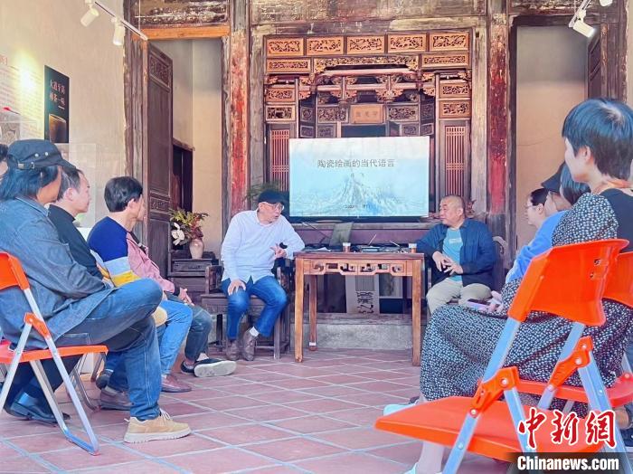 中新網廈門11月17日電 (楊伏山 劉筠)2023年廈門同安窯珠光青瓷傳承與創(chuàng)新研修班作品匯報展開幕式暨珠光青瓷燒制技藝傳習中心揭牌儀式,17日在廈門同安區(qū)汀溪鎮(zhèn)葉拱南故居舉行。
