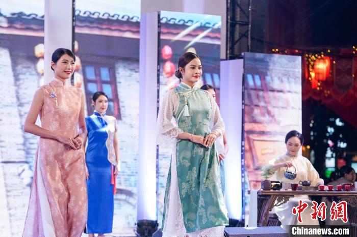 現(xiàn)場(chǎng)上演旗袍服飾秀。陳冠言 攝
