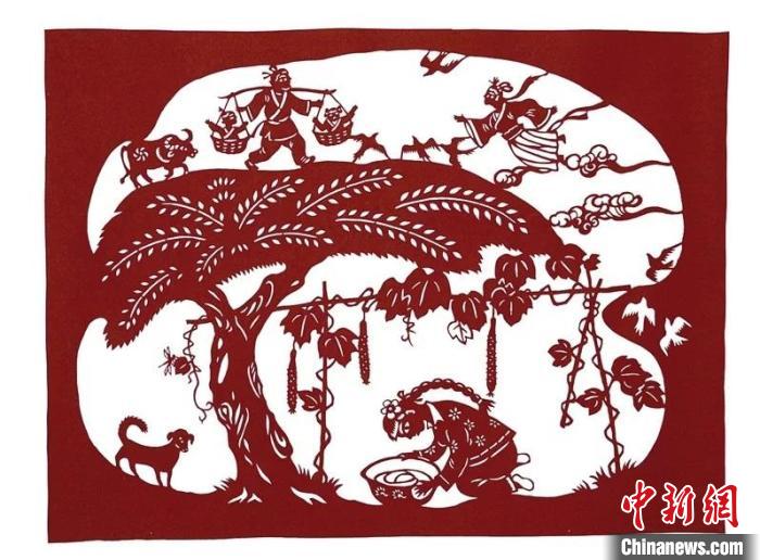 醫(yī)巫閭山滿族剪紙作品《乞巧節(jié)》。圖片來(lái)源:臺(tái)灣《聯(lián)合報(bào)》