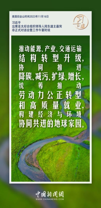 當(dāng)?shù)貢r間11月16日中午,中國國家主席習(xí)近平在舊金山出席亞太經(jīng)合組織領(lǐng)導(dǎo)人同東道主嘉賓非正式對話會暨工作午宴。習(xí)近平指出——