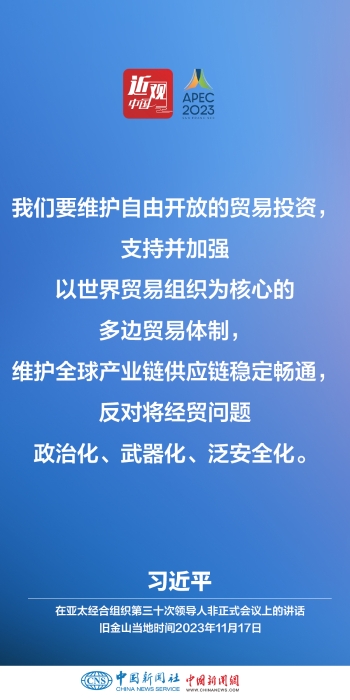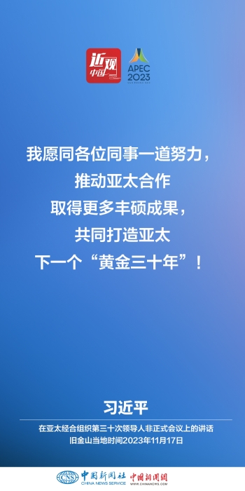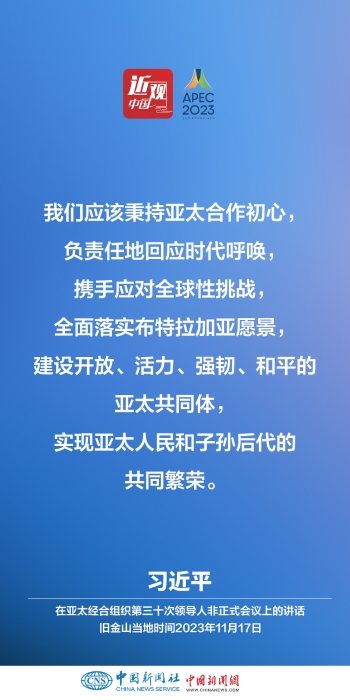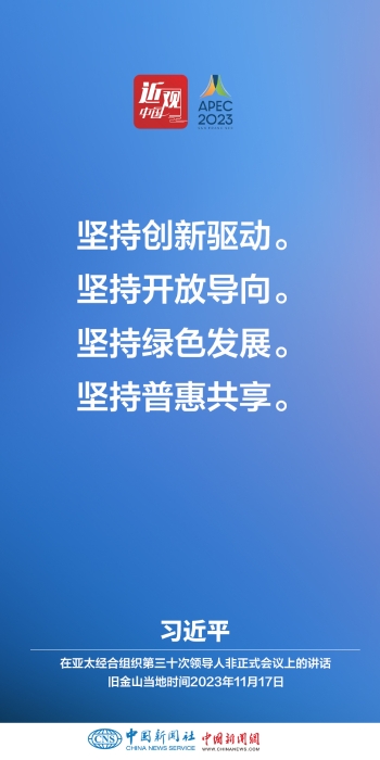 當(dāng)?shù)貢r(shí)間11月17日上午,亞太經(jīng)合組織第三十次領(lǐng)導(dǎo)人非正式會(huì)議在美國(guó)舊金山莫斯科尼中心舉行。中國(guó)國(guó)家主席習(xí)近平出席會(huì)議并發(fā)表題為《堅(jiān)守初心 團(tuán)結(jié)合作 攜手共促亞太高質(zhì)量增長(zhǎng)》的重要講話。他指出——
