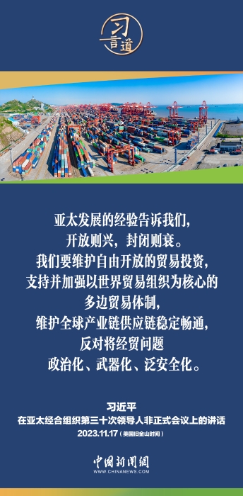 當(dāng)?shù)貢r(shí)間11月17日上午,中國國家主席習(xí)近平出席亞太經(jīng)合組織第三十次領(lǐng)導(dǎo)人非正式會議并發(fā)表重要講話。習(xí)近平指出——