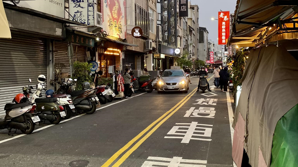 社交平臺粉?!芭_南式”表示,新美街規(guī)劃一條機慢車專用道后,不僅行人沒地方走,還變相“合法化”讓機車逆向。(圖/翻攝自“臺南式”粉專)