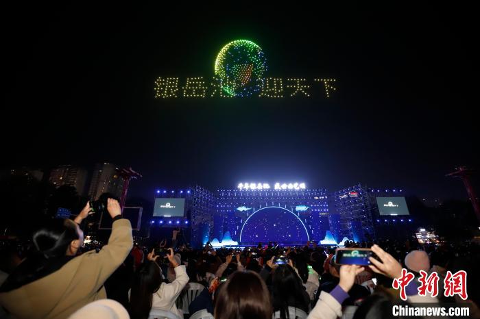 開幕式現(xiàn)場,無人機(jī)表演。岳池縣融媒體中心供圖