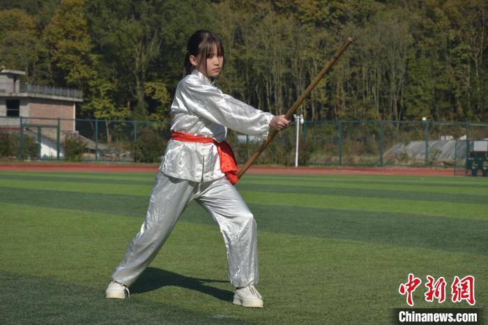 圖為宜春市袁州區(qū)南廟中學(xué)學(xué)生正在練習(xí)梅花棍術(shù)。巫發(fā)陽 攝
