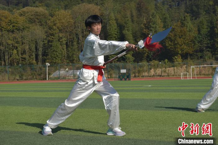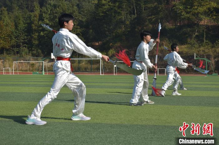 11月21日,走進(jìn)江西省宜春市袁州區(qū)南廟中學(xué)的操場上,六百余名學(xué)生隨著武術(shù)教練的口令練習(xí)六肘拳,武術(shù)社團(tuán)的學(xué)生隨后表演了梅花棍術(shù)、大刀、雙刀等傳統(tǒng)功夫,一招一式都極富韻律和力量,盡顯非遺武術(shù)魅力。