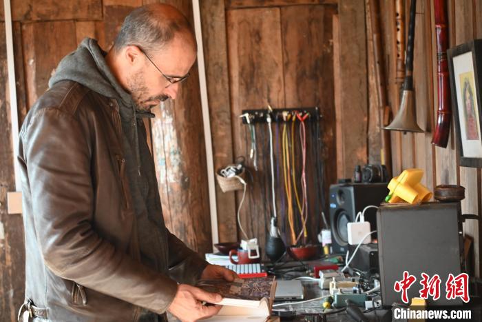 2023年10月,文森·漆在位于城口的工作室接受中新社記者采訪。張旭 攝