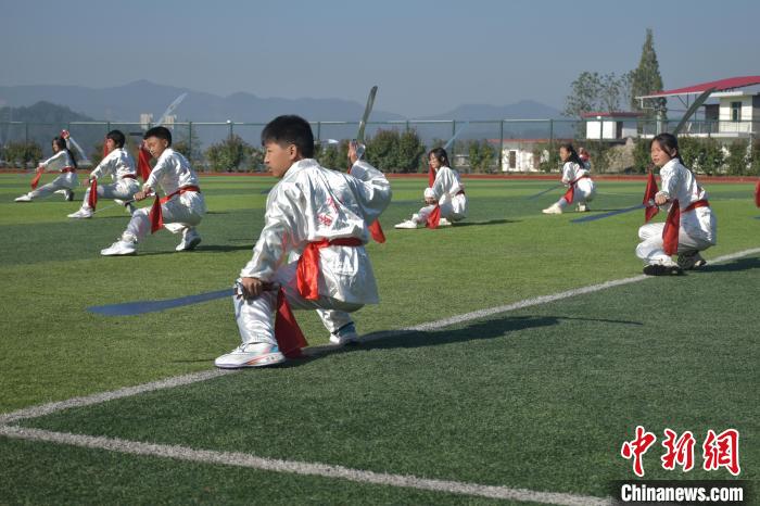 中新網江西袁州11月23日電(巫發(fā)陽)“一、二、三……”江西省宜春市袁州區(qū)南廟中學的操場上,六百余名學生隨著武術教練的口令,做出抱拳、馬步、運肘、仰劈等武術動作,一招一式都極富韻律和力量,盡顯非遺武術魅力。