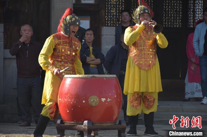 中新網(wǎng)江西萬載11月23日電(巫發(fā)陽)“咚咚咚——咚咚咚——”近日,江西省宜春市萬載縣萬載古城人頭攢動,一片喧囂的鑼鼓聲中,頭戴頭盔、身著盔甲的雄偉武士魚貫而出,他們正手執(zhí)長號、嗩吶、腰鑼等傳統(tǒng)樂器進(jìn)行得勝鼓表演。