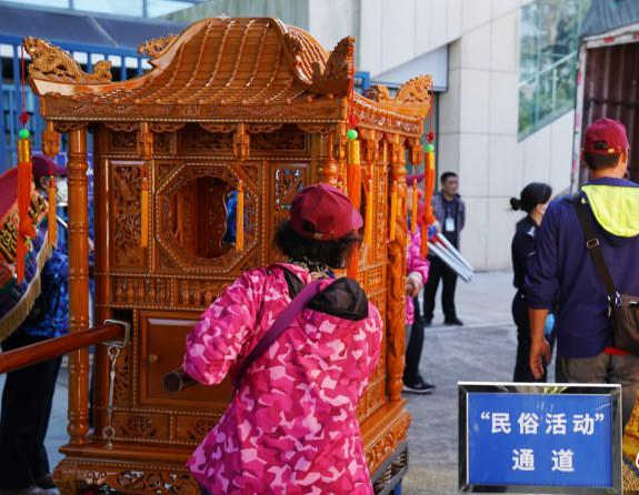 福州邊檢站結(jié)合落實《中華人民共和國出入境管理局出臺支持福建建設(shè)兩岸融合發(fā)展示范區(qū)十項出入境政策措施》,制定服務(wù)兩岸文化發(fā)展相關(guān)措施,設(shè)置“民俗通道”,為搬運大型進香出巡器具的旅客提供專屬個性化服務(wù)。