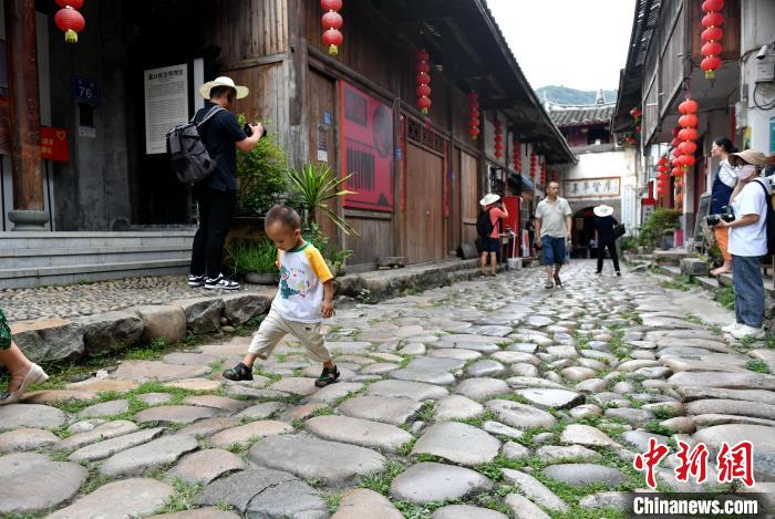 2023年8月14日,游客在福州市嵩口古鎮(zhèn)參觀。中新網(wǎng)記者 呂明 攝