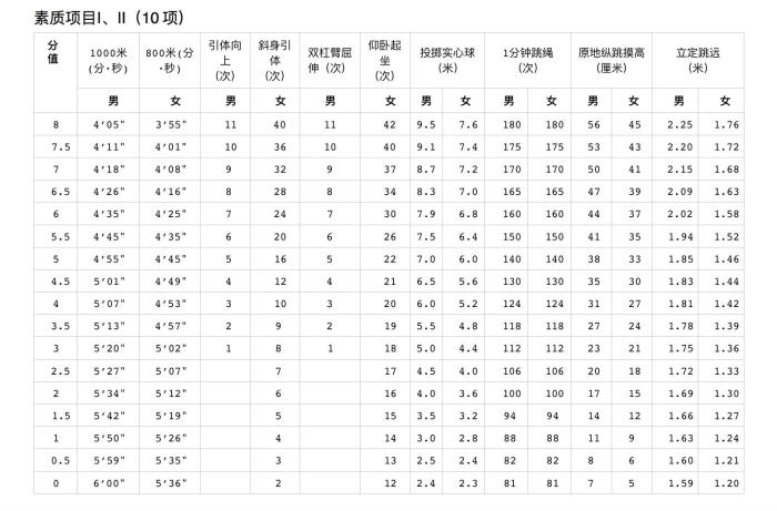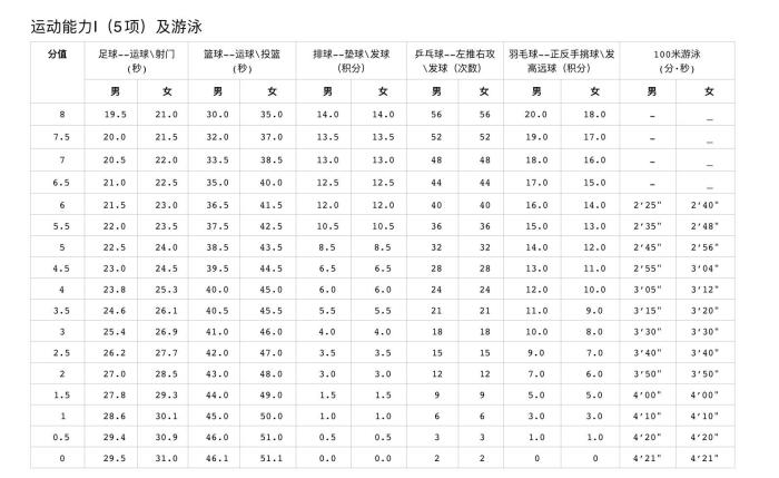 對(duì)照原來體育中考現(xiàn)場考試項(xiàng)目,在此次評(píng)分標(biāo)準(zhǔn)的制定上: