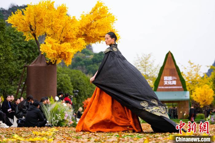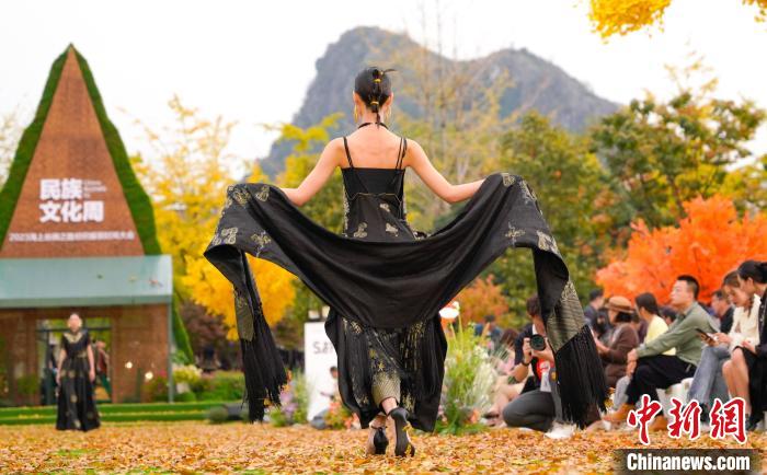 2023海上絲綢之路紡織服裝時尚大會“守民族時尚碧海 護絲路共生之約”海絲金綢展示。楊宗盛 攝