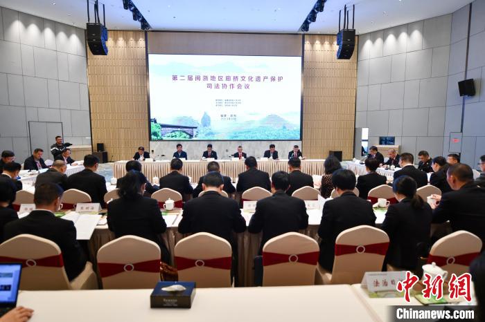中新網(wǎng)南平11月24日電(陳沁林 許錦藝)第二屆閩浙地區(qū)廊橋文化遺產(chǎn)保護(hù)司法協(xié)作會(huì)議在福建南平政和召開。浙江省高級(jí)人民法院副院長(zhǎng)朱新力,福建省高級(jí)人民法院審判委員會(huì)專職委員王珩,福建省文物局副局長(zhǎng)謝平,南平市委常委、政法委書記鐘文龍等出席會(huì)議并致辭。南平市中級(jí)人民法院黨組書記池力主持會(huì)議。與會(huì)代表經(jīng)過廣泛、深入的討論,一致通過《閩浙法院關(guān)于司法助力木拱廊橋申遺十條舉措》《閩浙法院廊橋司法保護(hù)(政和)宣言》。