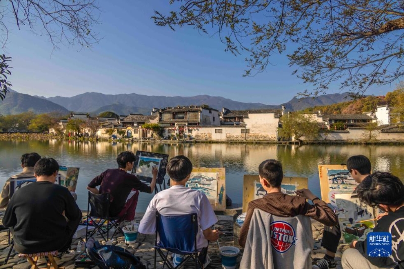 11月25日,學(xué)生在黃山市黟縣宏村寫(xiě)生。