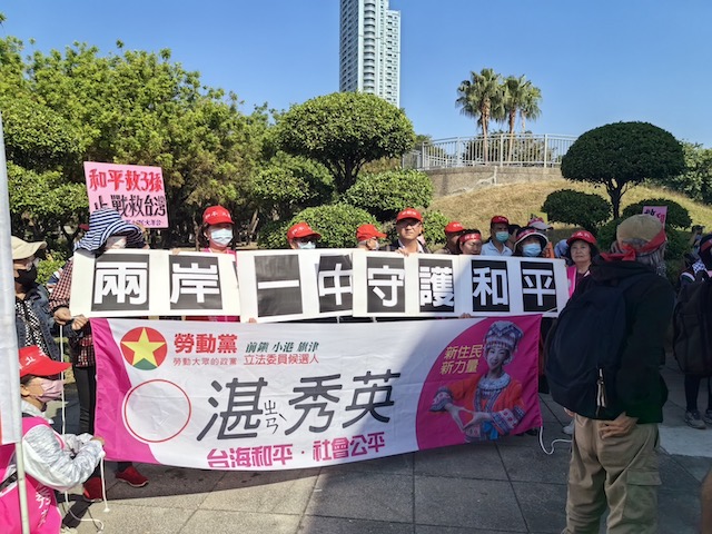 臺灣左翼聯(lián)盟等團體發(fā)起和平止戰(zhàn)快閃活動,26日上午在高雄中央公園和臺北同步舉行。勞動黨高雄民意代表候選人湛秀英率隊參與。(圖片來源:香港“中評社”)