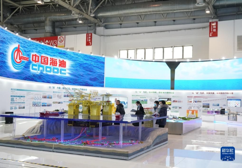 11月26日在中國國際供應鏈促進博覽會清潔能源鏈展區(qū)拍攝的中國海油展位。