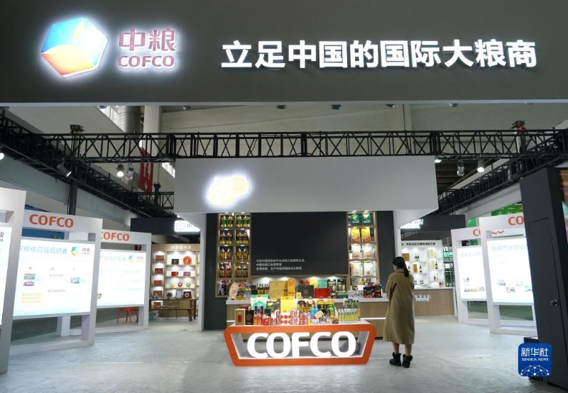 11月26日在中國國際供應鏈促進博覽會綠色農業(yè)鏈展區(qū)拍攝的中糧集團展位。