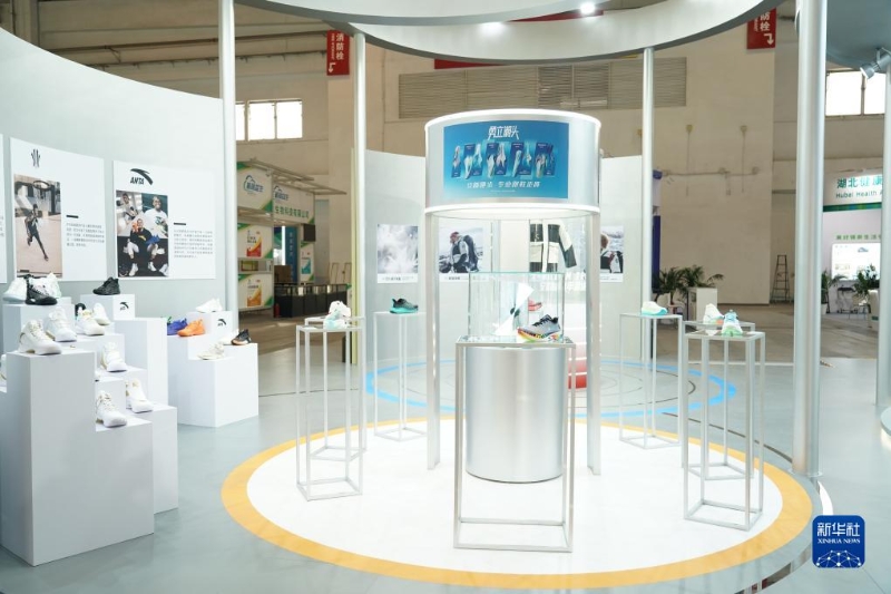 11月26日在中國國際供應鏈促進博覽會健康生活鏈展區(qū)拍攝的安踏展位。