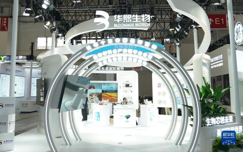 11月26日在中國國際供應鏈促進博覽會健康生活鏈展區(qū)拍攝的華熙生物展位。
