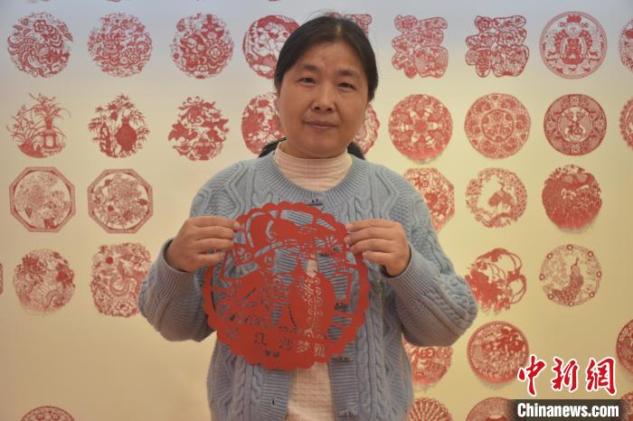 圖為樟樹市剪紙協會會員正在展示剪紙作品。巫發(fā)陽 攝