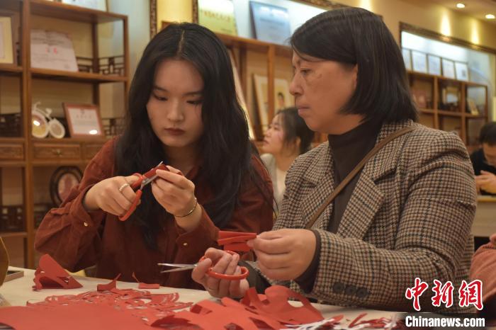 圖為剪紙愛好者正在進行剪紙創(chuàng)作。巫發(fā)陽 攝