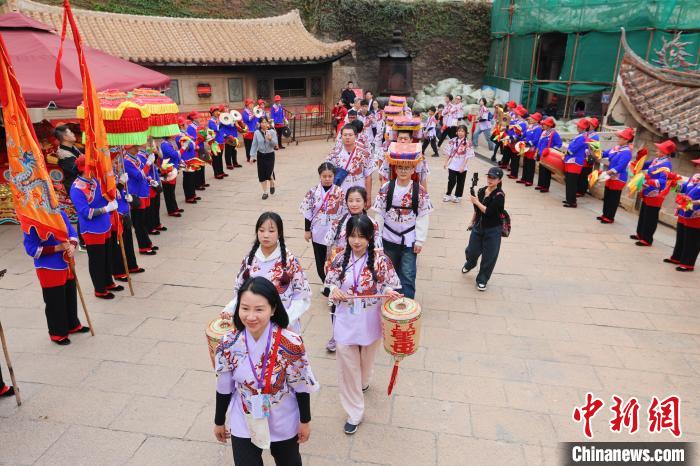 中新社福建湄洲島11月26日電 (葉秋云 程黎婷)背著媽祖神像,穿著漢服徒步前行……26日上午,80余名兩岸青年抵達“媽祖故里”福建省莆田市湄洲島,一場歷時五天四夜、行程超200公里的徒步朝圣之旅落下帷幕。
