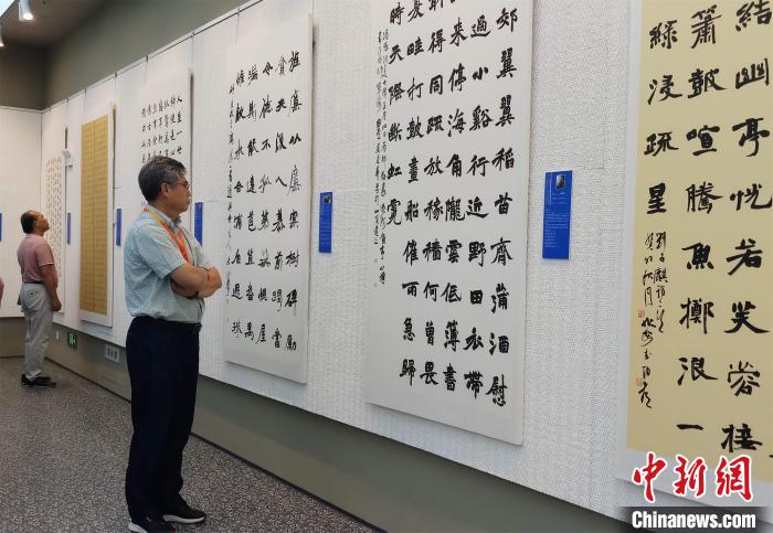 圖為2023年“文化北?!苯ㄔO(shè)活動(dòng)周內(nèi)容之一——中國(guó)書(shū)法蘭亭獎(jiǎng)獲獎(jiǎng)名家作品(北海)邀請(qǐng)展。記者 馮抒敏 攝