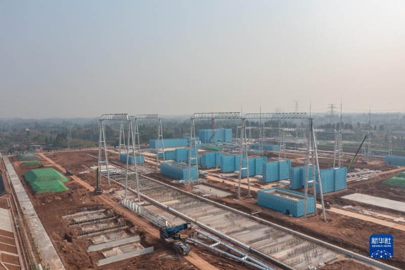 這是11月28日在重慶市銅梁區(qū)少云鎮(zhèn)拍攝的銅梁1000千伏變電站構架吊裝作業(yè)現(xiàn)場。