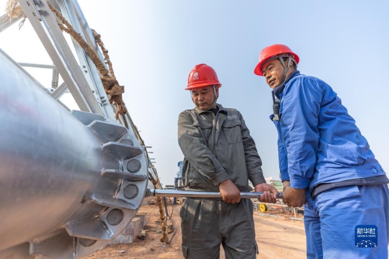 11月28日,在位于重慶市銅梁區(qū)少云鎮(zhèn)的銅梁1000千伏變電站施工現(xiàn)場,國網重慶送變電公司施工人員在吊裝前對構架梁進行檢查。