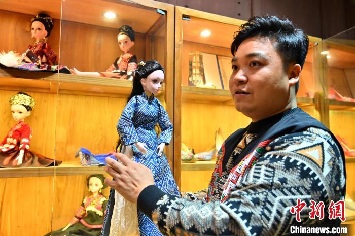 11月23日,蘭培文展示“壯錦娃娃”。俞靖 攝