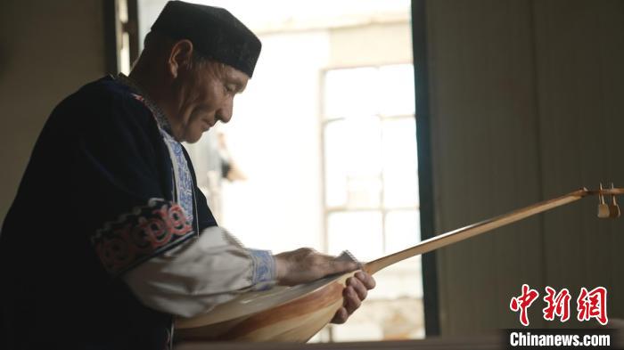 葉爾肯正在檢查琴箱。昌吉州融媒體中心供圖