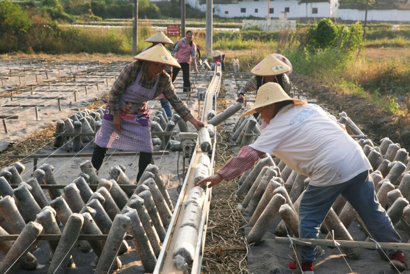 在浙江省云和縣赤石鄉(xiāng)麻垟村的稻耳輪作小微產(chǎn)業(yè)園里,綠緣農(nóng)產(chǎn)品專業(yè)合作社負責(zé)人沈飛林帶領(lǐng)村民,將一個個打過孔的菌棒碼放在已完成收割的稻田里。