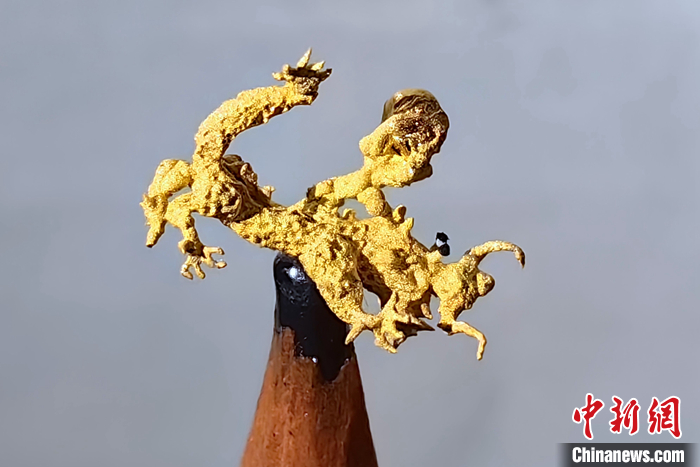 臺灣雕刻家陳逢顯介紹,為迎接農(nóng)歷龍年,特創(chuàng)作此黃金微雕作品。作品長1厘米、寬6毫米,歷時6個月、經(jīng)歷數(shù)十次失敗才完成,其中龍眼、龍須等雕刻難度較大。近年來,他創(chuàng)作了十二生肖的黃金微雕作品,希望通過微雕藝術(shù)傳承中華傳統(tǒng)文化。