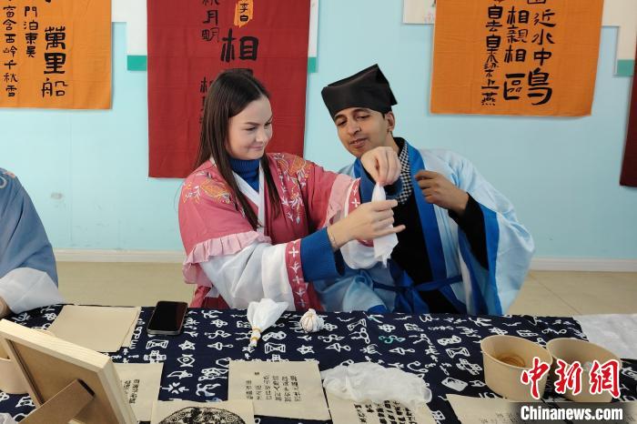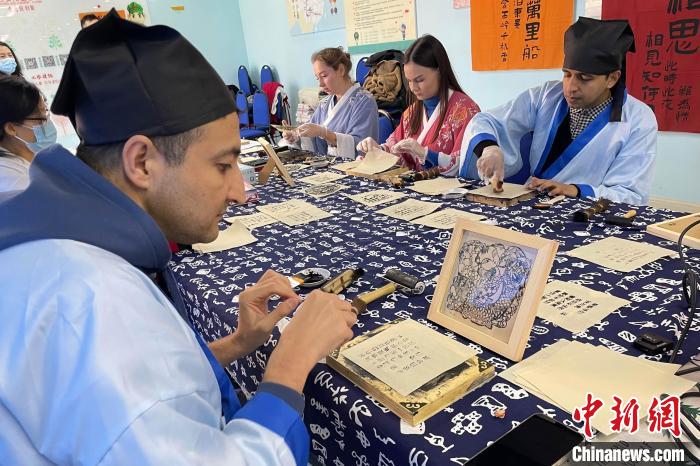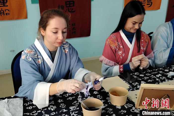 11月28日,“傳承匠心·魅力非遺”公益課堂在山東省青島市李滄區(qū)興華路街道新時(shí)代文明實(shí)踐所“開課”。現(xiàn)場,來自俄羅斯、埃及、阿富汗等國家和地區(qū)的外國友人現(xiàn)場學(xué)習(xí)、體驗(yàn)扎染、活字印刷術(shù)等非物質(zhì)文化遺產(chǎn),感受中國傳統(tǒng)文化的魅力。