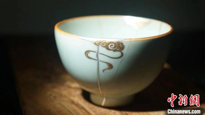 金繕是一種運用純天然材質(zhì)修補(bǔ)殘缺器物的工藝,起源于中國傳統(tǒng)髹飾工藝的金泥工藝。不同于無痕修復(fù),金繕修復(fù)不試圖掩蓋缺陷,多用生漆和金箔對裂隙進(jìn)行黏合點綴,通常會在器物表面留下清晰的紋路,有如經(jīng)歲月洗禮后生出的“皺紋”,呈現(xiàn)別樣美感。