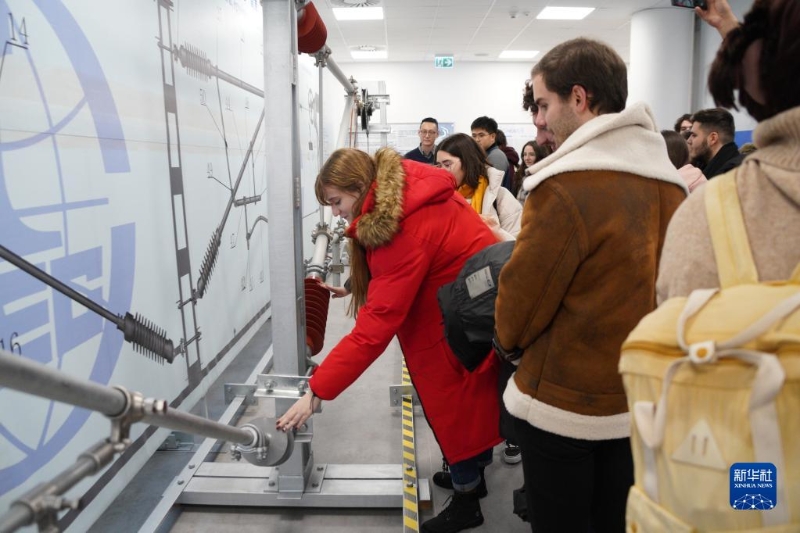 11月30日,匈牙利羅蘭大學中文系師生在匈牙利布達佩斯參觀匈塞鐵路四電產(chǎn)品實驗室。